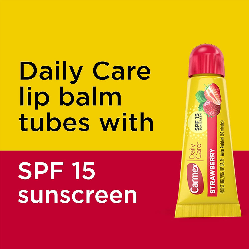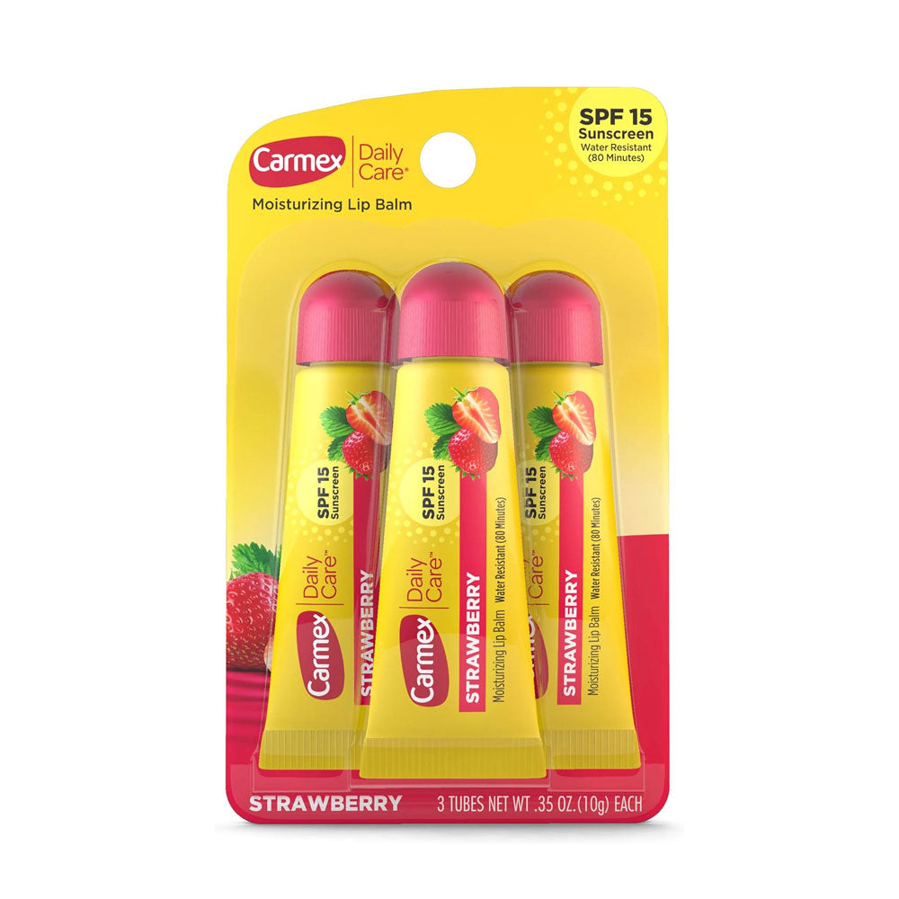 Keep your lips soft, smooth, and protected with Carmex Moisturizing Lip Balm with SPF 15 Strawberry. This daily lip care essential not only hydrates but also shields your lips from harmful UV rays, making it perfect for everyday use. Infused with a refreshing strawberry flavor, this lip balm provides sun protection for up to 80 minutes of water resistance, so your lips stay safe and nourished while you swim, exercise, or enjoy the outdoors.