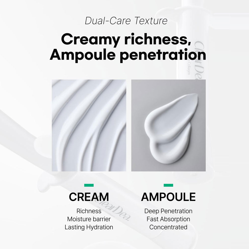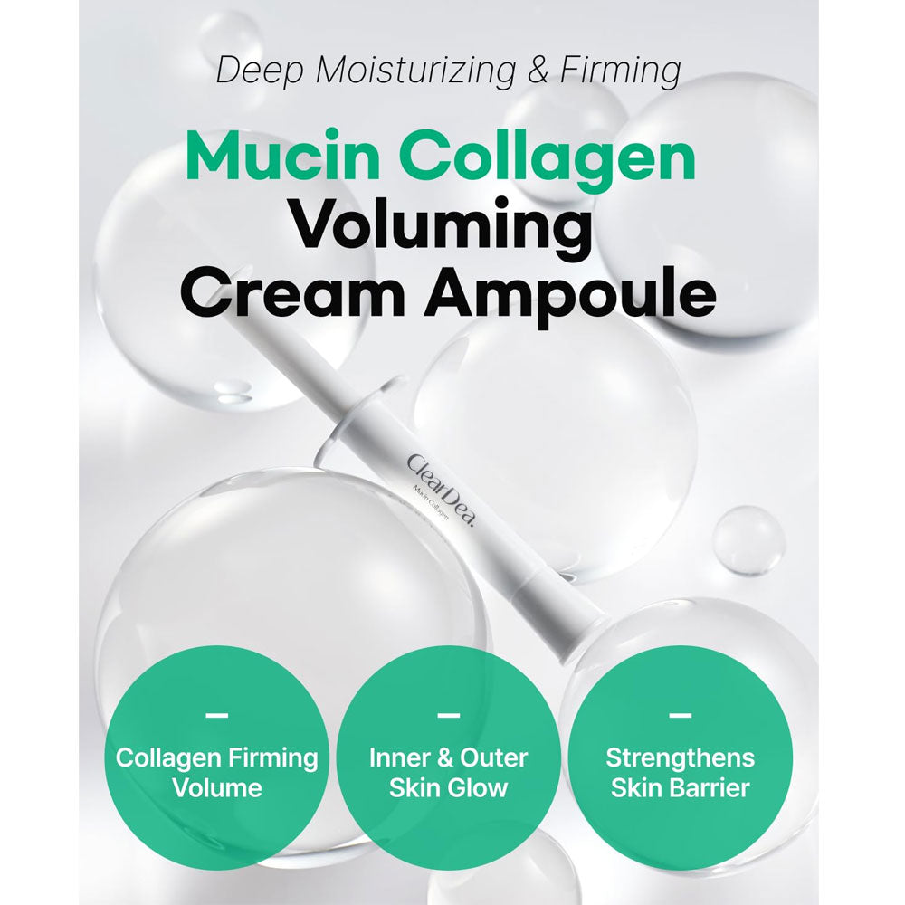 The ClearDea Mucin Collagen Voluming Cream Ampoule is an intensive anti-aging and hydrating treatment designed to firm, lift, and rejuvenate tired skin. Infused with 7 types of collagen and 3 types of mucin, it targets fine lines, wrinkles, and sagging skin while restoring elasticity for a youthful glow.