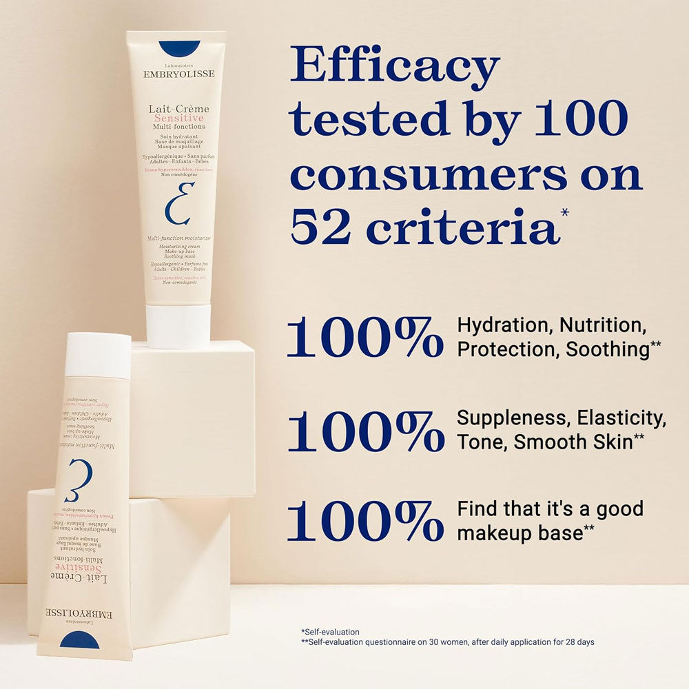 Experience the cult-favorite Embryolisse Lait-Crème Sensitive Cream, specially developed for sensitive and reactive skin. This multi-purpose French skincare icon deeply hydrates and nourishes while maintaining a lightweight, fast-absorbing texture.