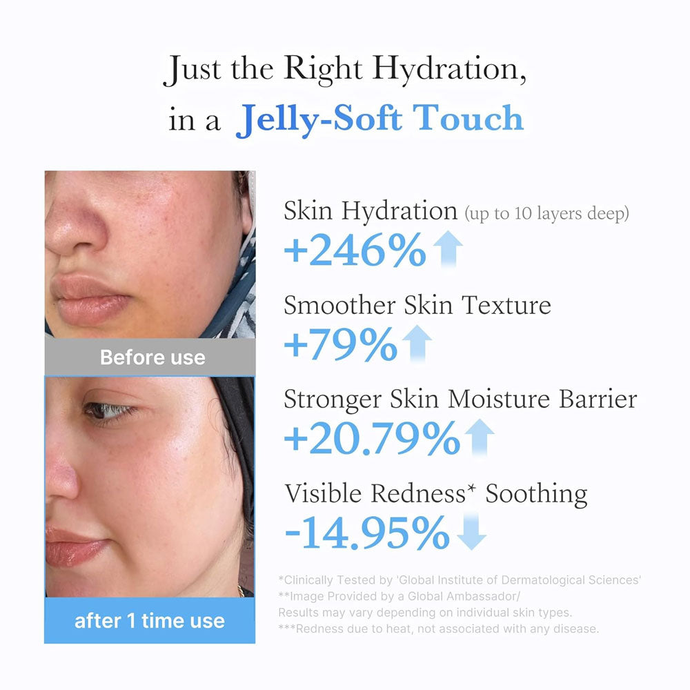 - Soothing Jelly Texture: Absorbs instantly without any stickiness or greasiness—ideal for layering under makeup.