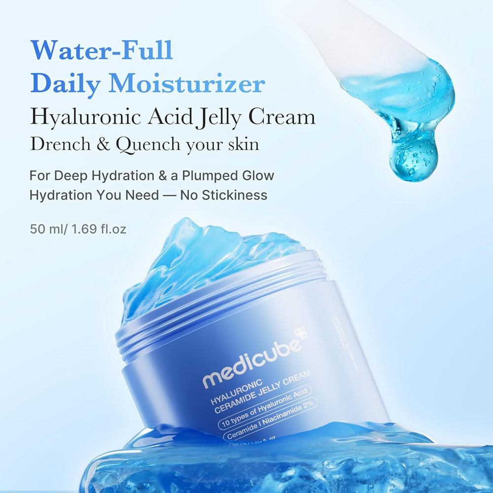 Say goodbye to the "dry skin blues" with the Medicube Hyaluronic Ceramide Jelly Cream. This innovative water-in-jelly moisturizer is engineered to deliver intense moisture through 10 layers of the skin, ensuring a plump, "glass-skin" look that lasts all day. Unlike heavy traditional creams, its unique jelly texture feels weightless and breathable.