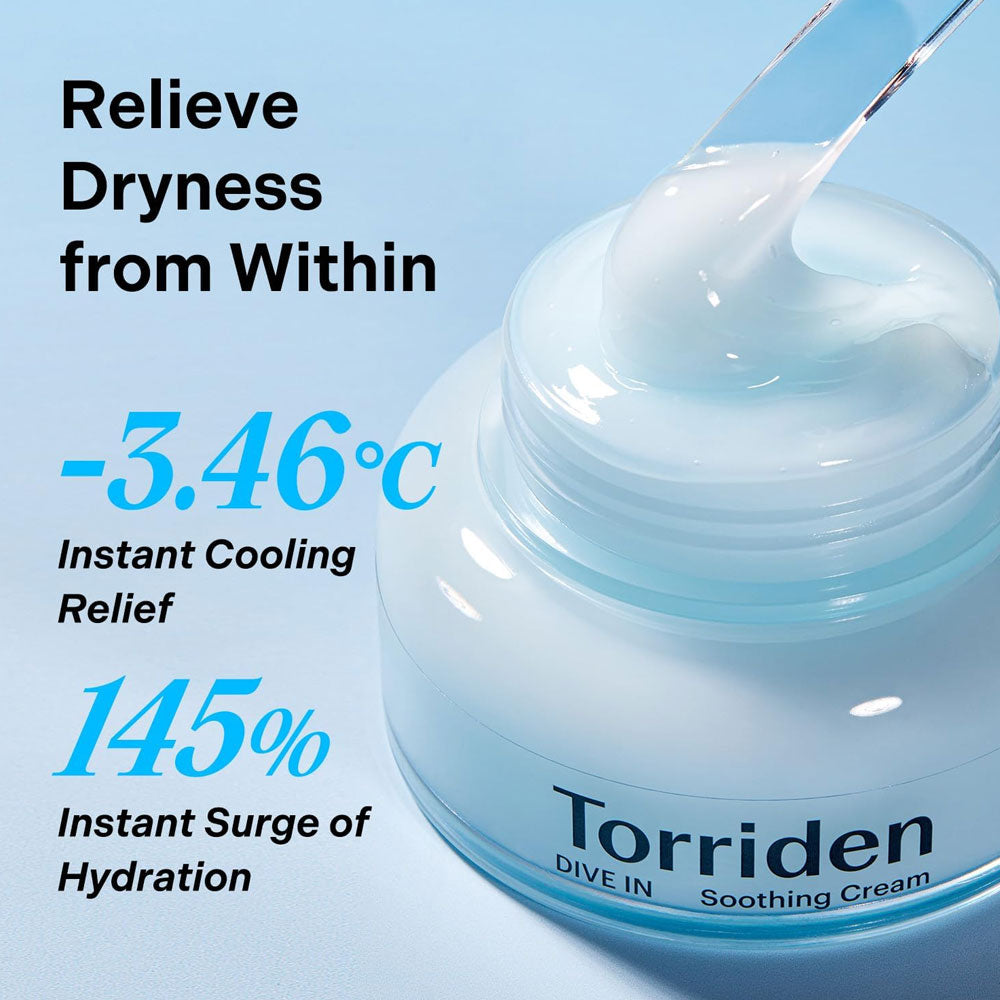 Beat skin dehydration with the award-winning Torriden DIVE-IN Low Molecular Hyaluronic Acid Soothing Cream. Specifically designed for those who struggle with "inner dryness" and oily surface skin, this cream provides deep, multi-level hydration. Its star ingredient, the 5D-Complex Hyaluronic Acid, utilizes five different molecular weights of HA to ensure moisture reaches every layer of your dermis for a truly revitalized glow.