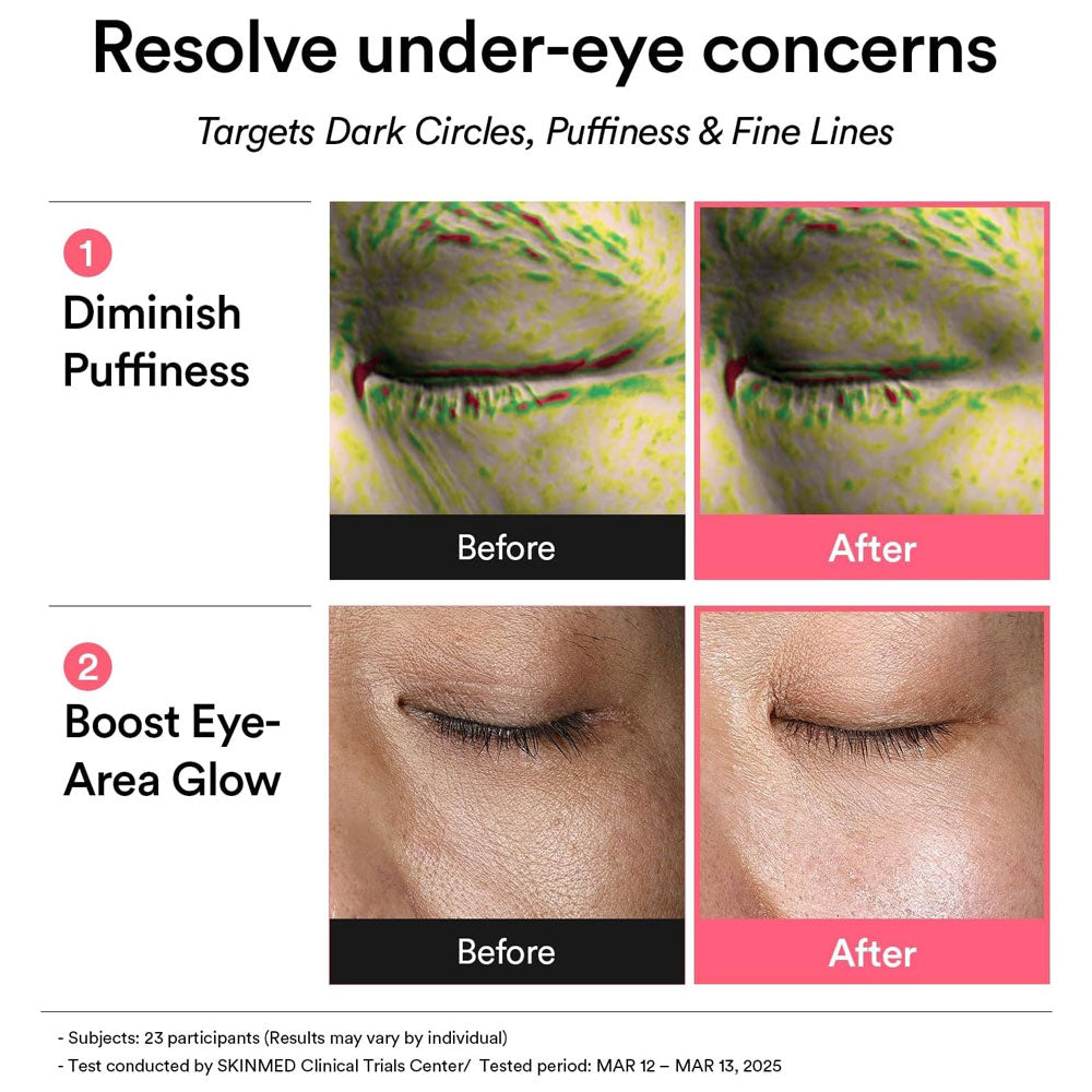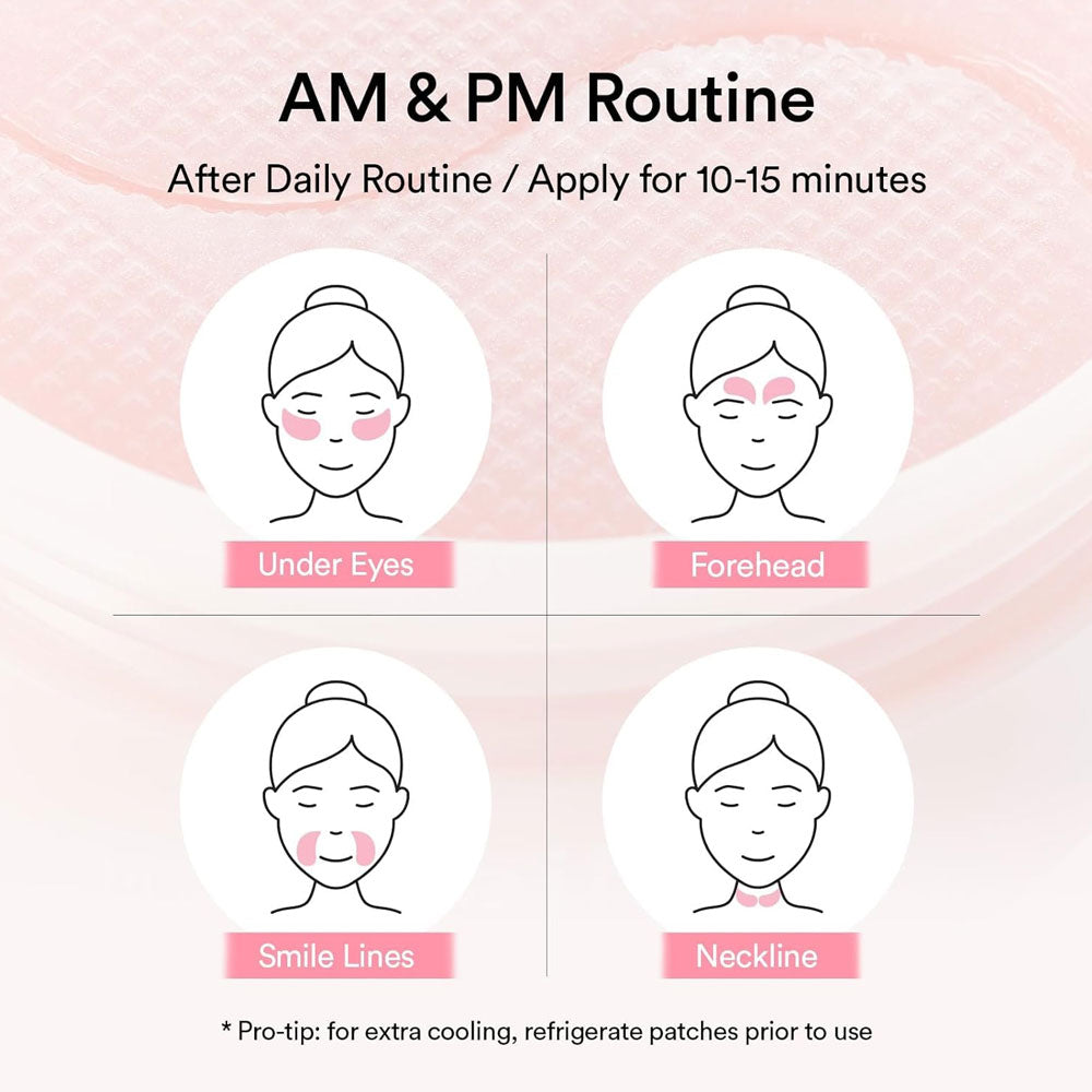 The formula also includes centella asiatica and ginkgo biloba leaf extracts for soothing, antioxidant-rich care that strengthens the delicate under-eye area. Designed with a double-sided embossed texture, the patches adhere comfortably without slipping, ensuring maximum absorption and visible results.