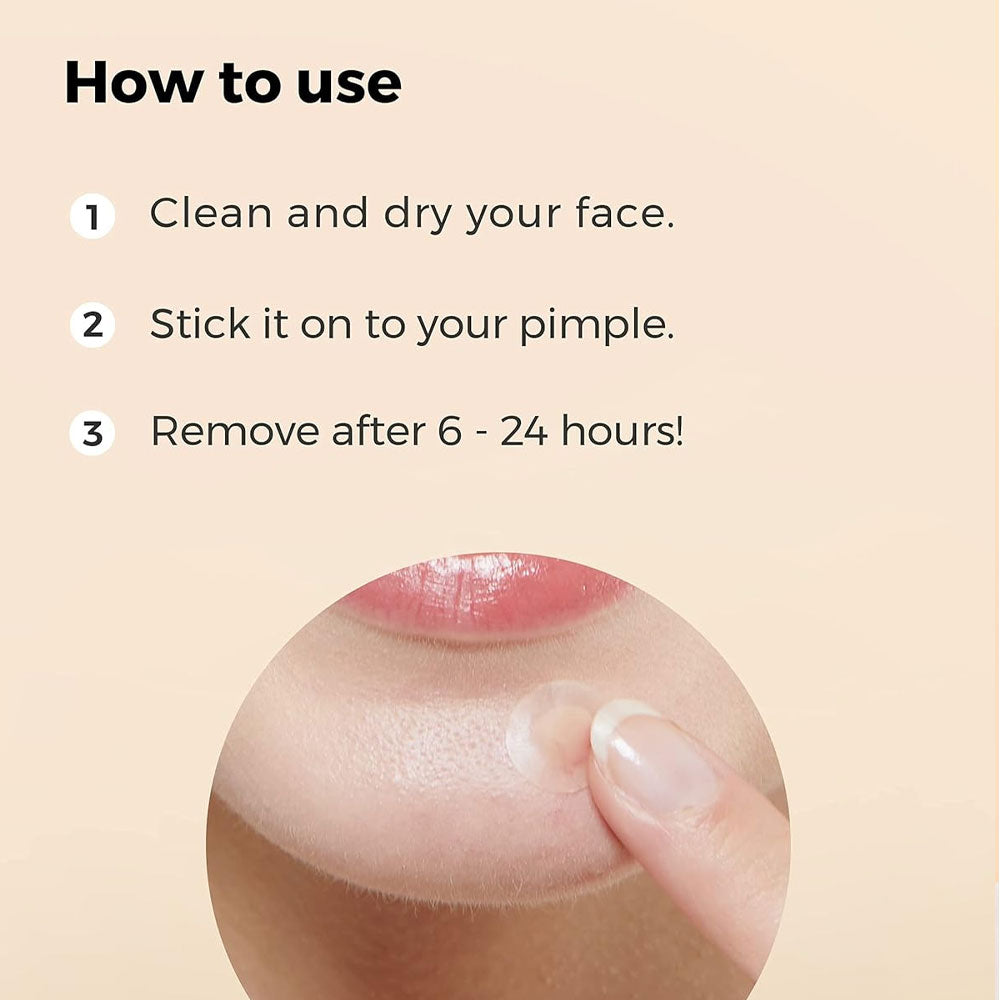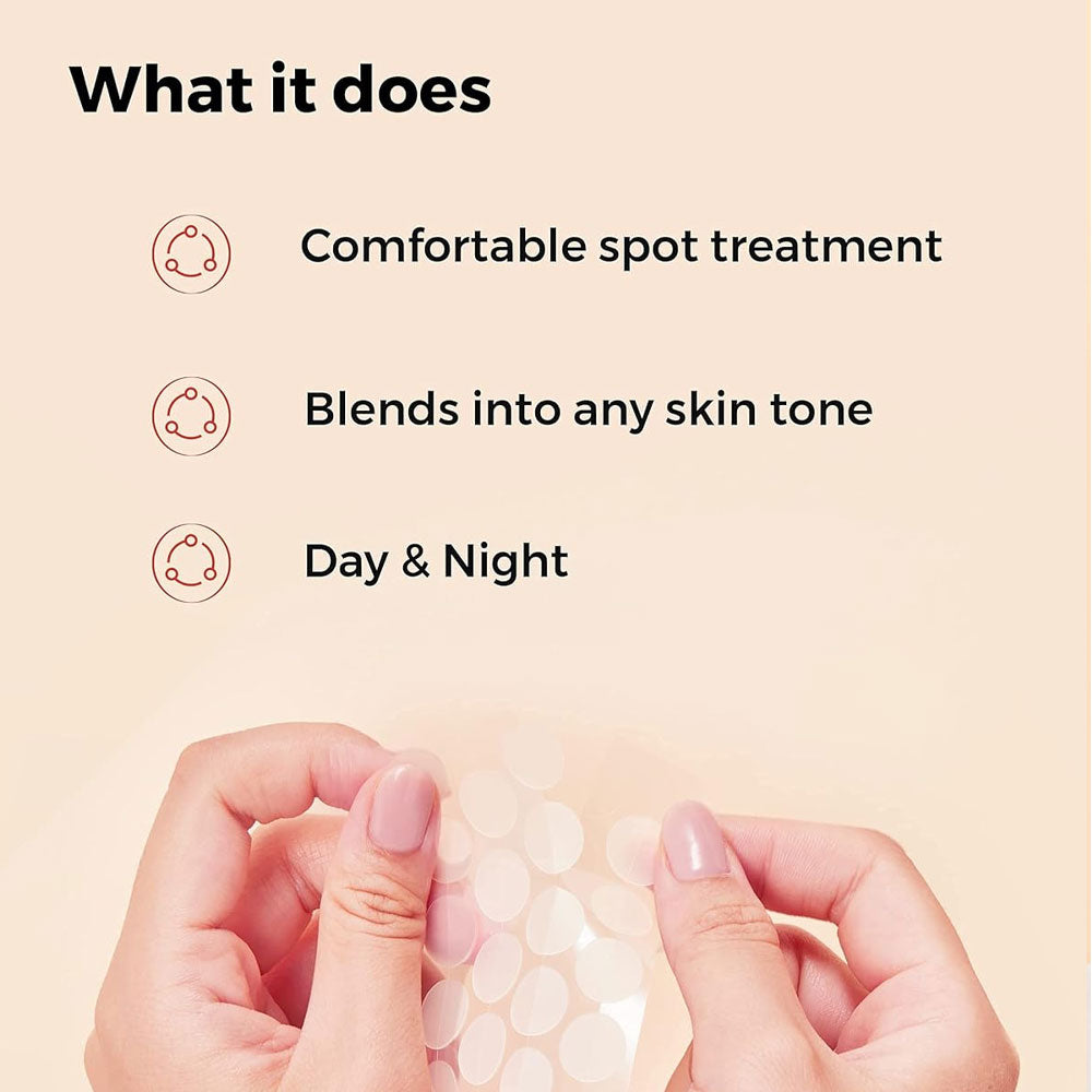 Each pack includes 36 patches in multiple sizes, allowing you to target whiteheads, inflamed pimples, or early-stage breakouts with precision. The transparent, flat design blends seamlessly into the skin and can be worn during the day — even under makeup.
