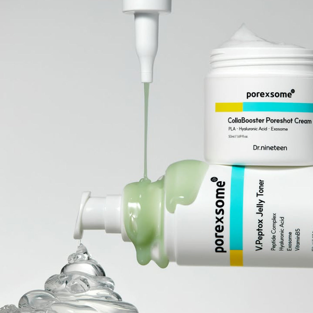 Elevate your skincare routine with Dr.nineteen PoreXsome Collabooster Poreshot Cream, a high-performance face cream designed to refine pores, enhance elasticity, and deliver intense hydration. Infused with Pore Exosome technology, nano-sized Poly Lactic Acid, and 12 types of Hyaluronic Acid, it supports collagen production, tightens pores, and strengthens the skin barrier.