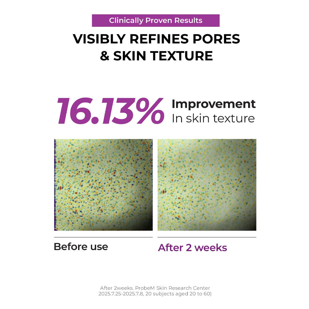 Refines rough skin texture and minimizes the appearance of pores