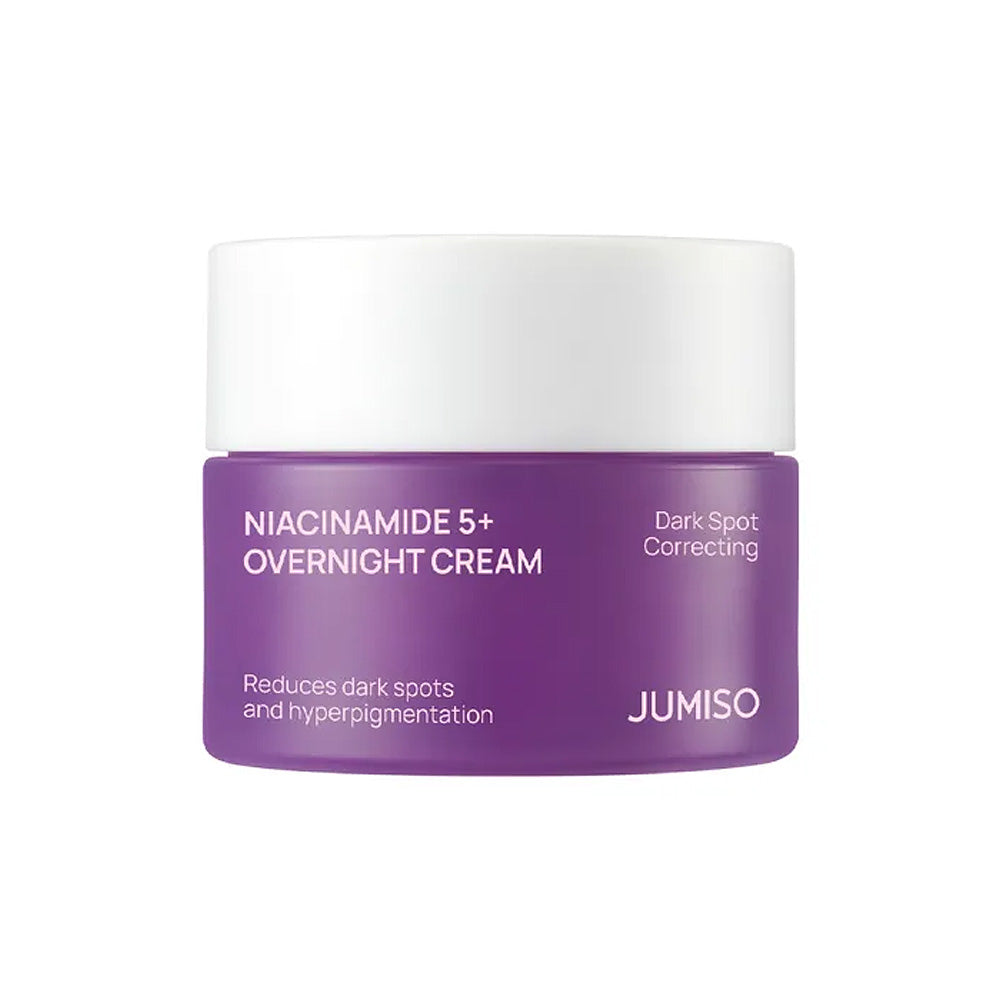 JUMISO Niacinamide 5+ Overnight Cream is a targeted brightening and skin-repair night cream designed to improve dark spots, post-acne marks, uneven tone, and early signs of aging while you sleep. Formulated with Niacinamide, Tranexamic Acid (TXA), and Glutathione, it works overnight to refine pores, enhance clarity, and restore skin radiance.