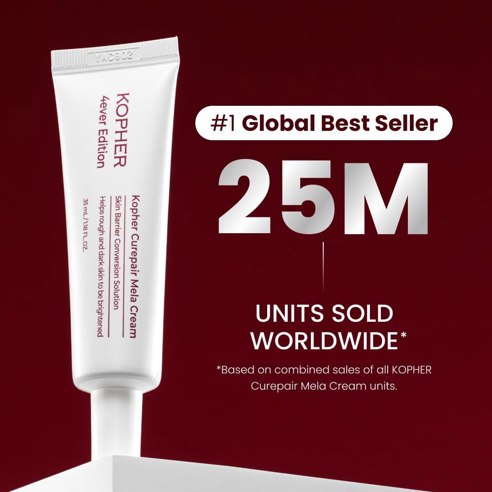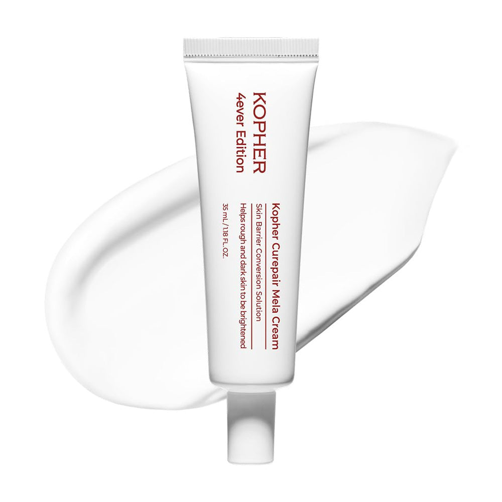 The KOPHER Curepair Mela Cream is a multi-action brightening and anti-aging cream designed to lift, tighten, and revive dull skin. Powered by 10 types of peptides, Niacinamide, and soothing honeysuckle & matricaria flower extracts, this formula boosts elasticity, minimizes enlarged pores, and targets dark spots for a visibly youthful glow.