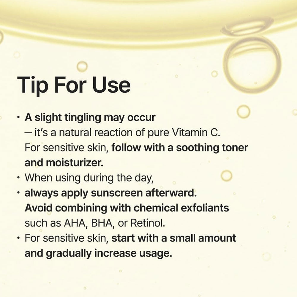 Protect: During the day, always follow with sunscreen to prevent Vitamin C oxidation on the skin.