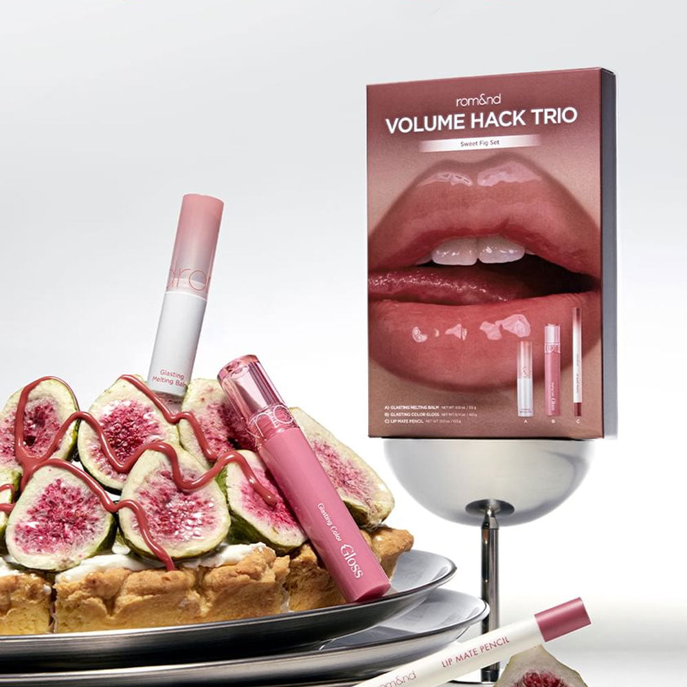 Get the perfect Korean lip combo with the romand Volume Hack Trio Sweet Fig Set, now available in Pakistan. This must-have 3-piece lip kit includes: