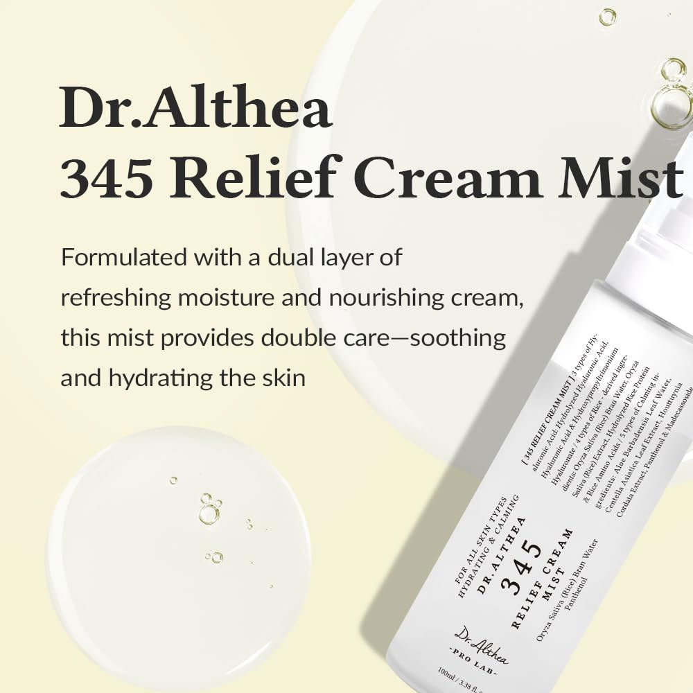 Give your skin the ultimate refresh with Dr. Althea 345 Relief Cream Mist, a unique dual-layer formula combining hydration and nourishment in every spray. The cream layer is infused with rice bran water, hyaluronic acid, and panthenol to deeply moisturize and strengthen the skin barrier. The water essence layer, enriched with madecassoside, aloe leaf water, and centella leaf extract, soothes irritation and calms redness.