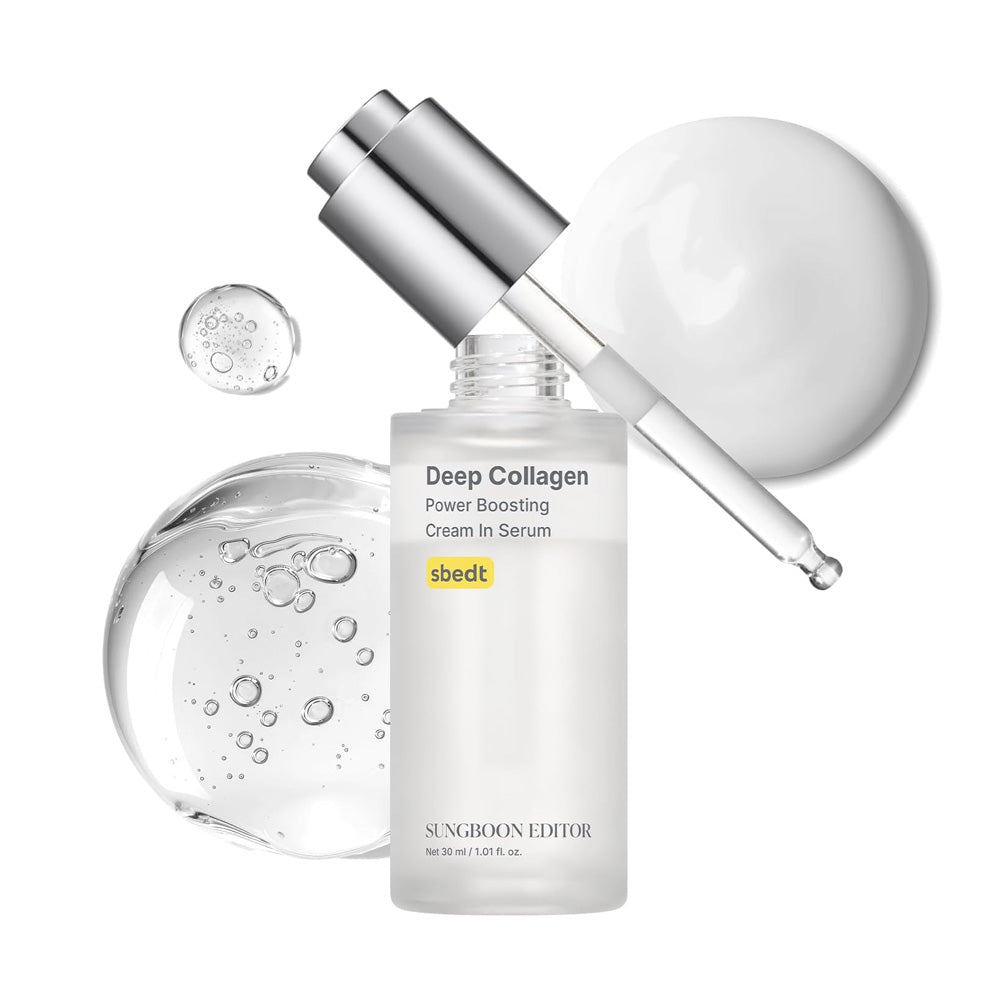 The SUNGBOON EDITOR Deep Collagen Power Boosting Cream In Serum is a dual-layer anti-aging formula that combines the nourishment of a cream with the lightweight absorption of a serum. Enriched with hydrolyzed collagen and 17 amino acids, it helps minimize wrinkles, improve skin elasticity, and deliver deep hydration. The ultra-micro collagen (300Da) penetrates effectively, leaving skin firm, plump, and radiant. Suitable for all skin types, including sensitive skin.