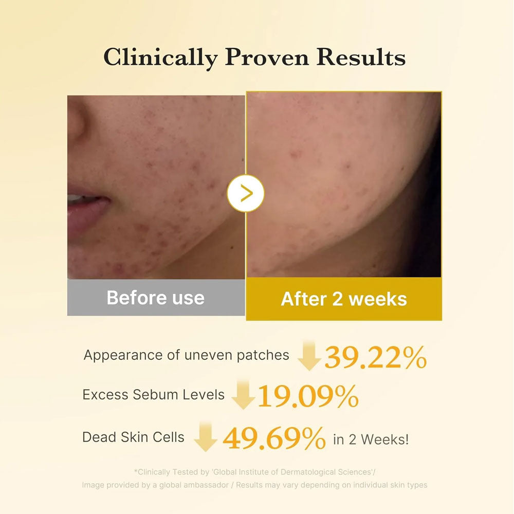 Clinically tested to improve uneven patches, sebum levels, and skin texture in just 2 weeks, these pads deliver an effortless glow while keeping your skin balanced and healthy.