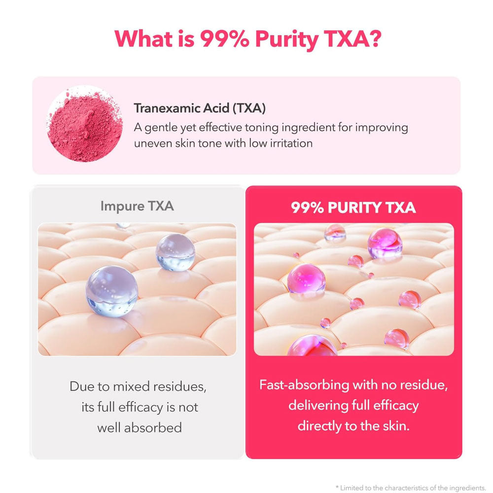 • Brightens dark spots and discoloration with 99% pure TXA