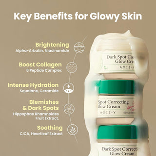 Achieve visibly brighter, even-toned skin with the AXIS-Y Dark Spot Correcting Glow Cream. This vegan and cruelty-free gel cream is formulated with a powerful blend of Alpha-Arbutin, Niacinamide, and Vitamin C to target dark spots, pigmentation, and dullness. Its gentle yet effective formula provides deep hydration using hyaluronic acid, ceramide NP, and 6 Peptide Complex to improve skin texture and barrier strength.