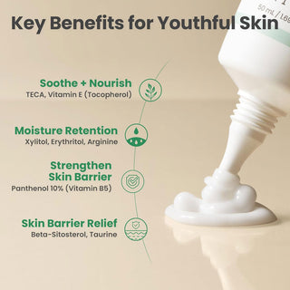 The AXIS-Y Panthenol 10 Skin Smoothing Shield Cream is a vegan-friendly moisturizer specially formulated for dry, sensitive, and stressed skin. Powered by 10% Panthenol (Provitamin B5) and TECA (Centella Asiatica extract), this cream strengthens the skin barrier, soothes irritation, and provides long-lasting hydration.