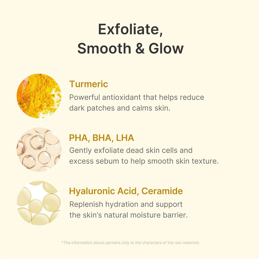 Powered by kojic acid and turmeric, this formula targets dullness, uneven tone, and visible marks, while niacinamide and vitamin C enhance skin clarity and glow. Its hypoallergenic, low-irritation formulation makes it suitable even for sensitive skin types looking for consistent exfoliation without harsh acids.