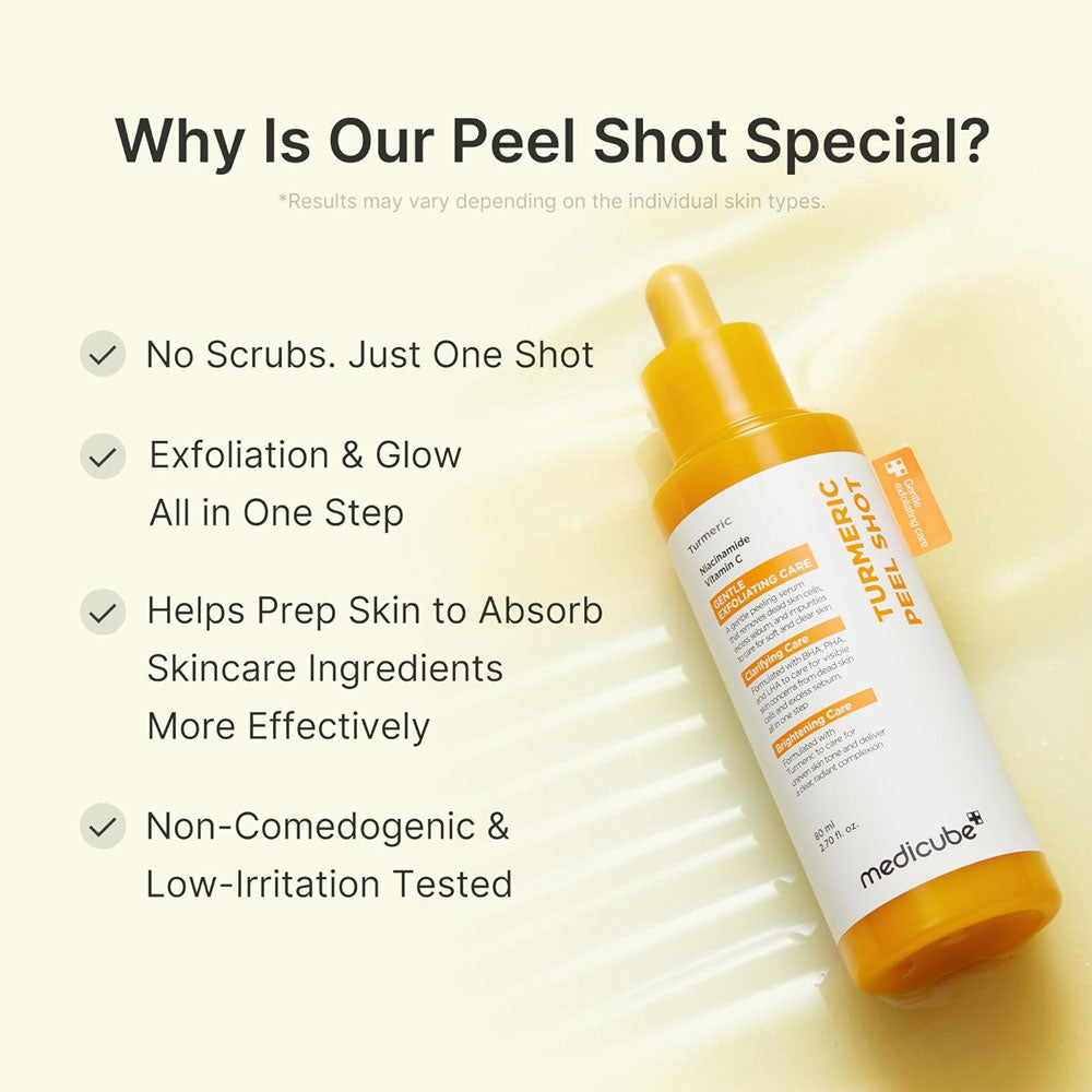 Reveal clearer, smoother, and more radiant skin with Medicube Kojic Acid Turmeric Peel Shot 80ml, a gentle daily exfoliating serum designed to refine skin texture without irritation. This lightweight peel shot helps remove dead skin cells, excess oil, and buildup while supporting a brighter, more even complexion.