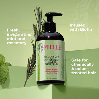 Strengthen and revitalize dry, brittle hair with the Mielle Rosemary Mint Strengthening Leave-In Conditioner. Formulated with biotin, rosemary, and mint, this lightweight conditioner deeply hydrates, detangles, and smooths hair while promoting healthy growth. Ideal for all hair types, especially dry, curly, and damaged hair, it helps lock in moisture, reduce breakage, and restore shine without weighing hair down.
