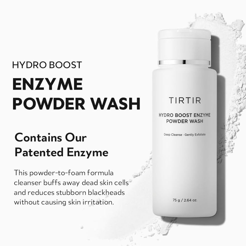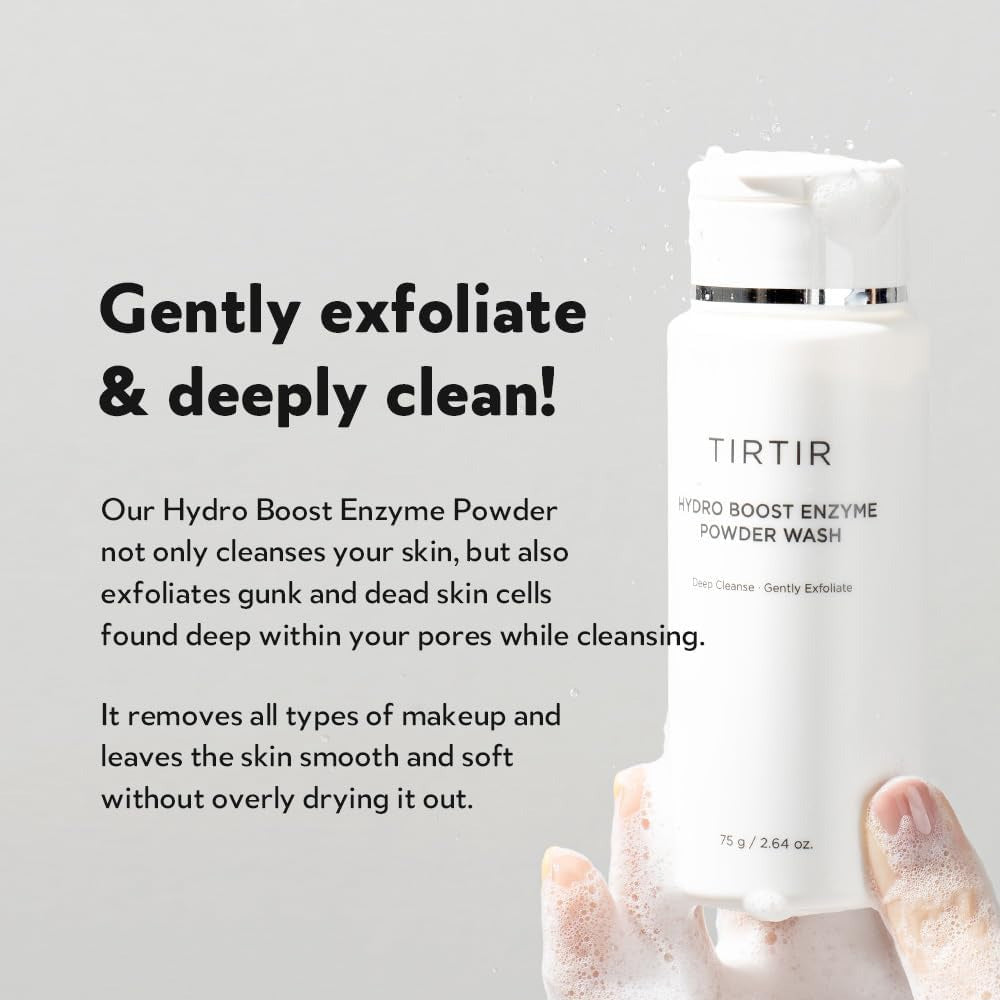 Experience gentle yet powerful cleansing with the TIRTIR Hydro Boost Enzyme Powder Wash, a water-activated powder-to-foam cleanser designed to deeply cleanse pores while protecting your skin barrier. Infused with the Rice Enziotics Complex—a blend of patented enzymes, PHA, rice extract, mung bean powder, and probiotics—this hypoallergenic formula exfoliates dead skin cells, reduces blackheads and whiteheads, and boosts hydration for a smoother, clearer complexion.