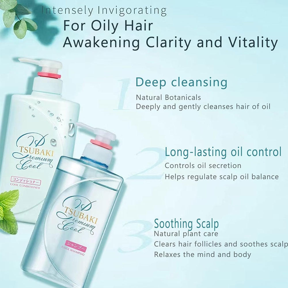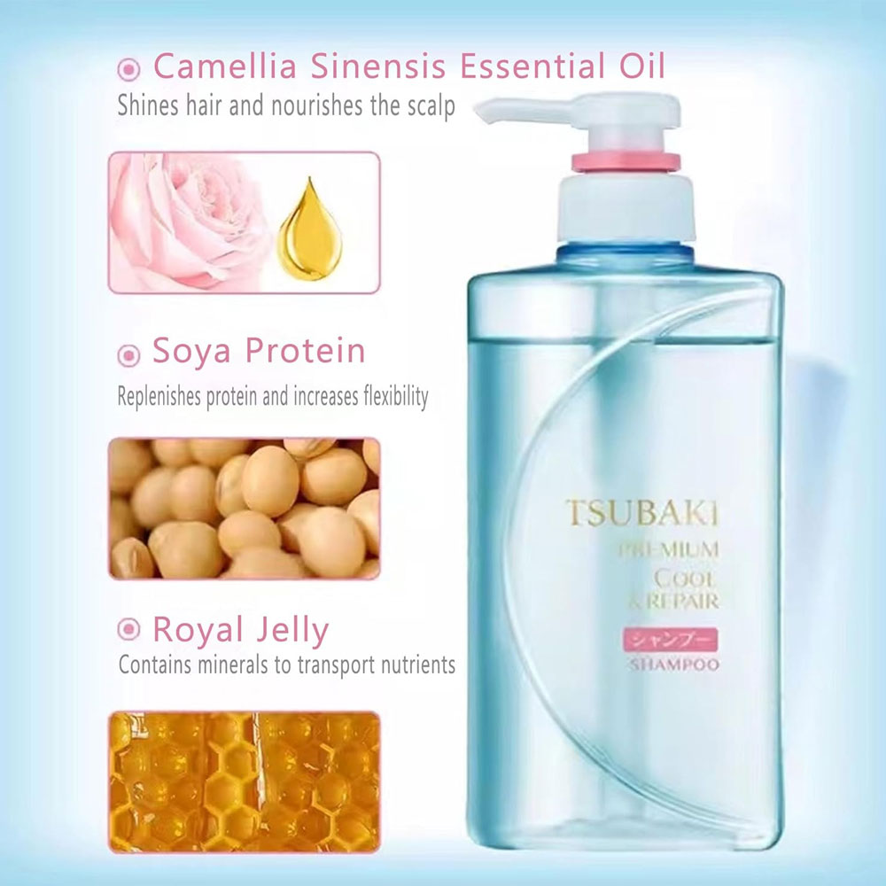 TSUBAKI Premium Cool & Repair Shampoo and Conditioner Set by Shiseido is designed to cleanse, refresh, and repair your hair—especially during hot and humid weather. Formulated with cooling menthol-based ingredients, this set soothes scalp discomfort, reduces oiliness, and leaves a clean, breezy sensation after every wash.